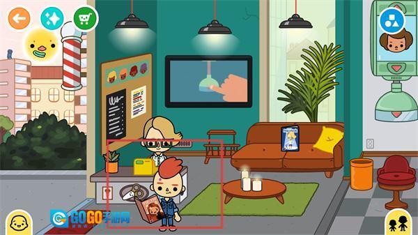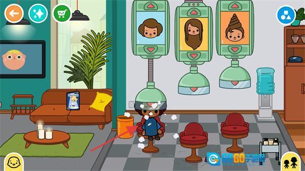 4、挑选理发椅旁对应的发型装置,给角色更换发型,感受装扮类的互动玩法。