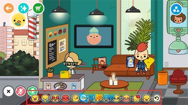 1、在室内场景里,可借助下方的表情栏挑选表情,以此为角色切换各式各样的情绪状态,从而提升互动的趣味性。