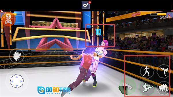 2、第1轮比赛开启后,留意对手的站位情况,右侧技能栏会呈现可使用的摔跤动作,挑选合适的技能来发动攻击。