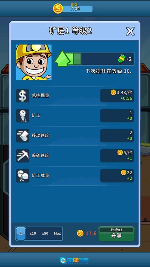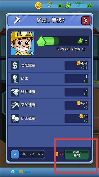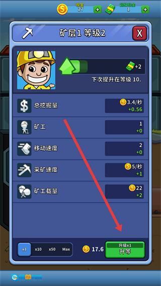 4、驱使矿工工作获得足够金币,返回升级即可。