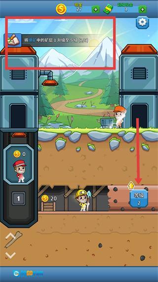 1、根据任务找到等级按钮,点击进入矿层等级界面。