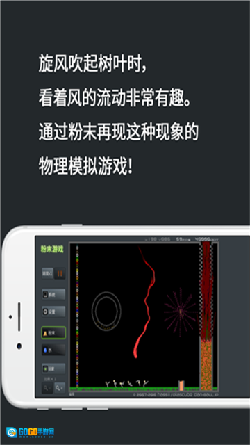 3、在场景中进行添加【粉末】的操作,留意其展现出的轨迹形态,探究粉末在场景里的物理互动效果。