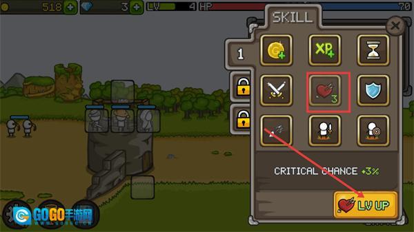 2、打开技能界面后,对【心形带弓箭】技能进行升级,以此提高暴击率,从而更好地应对更强大的敌人。