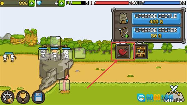 在游戏前期,升级城堡是很有必要的操作。升级城堡不仅能提升它的生命值与可用法力值,还可以增加防守点的数量,建议前期先把防守点提升到6个。