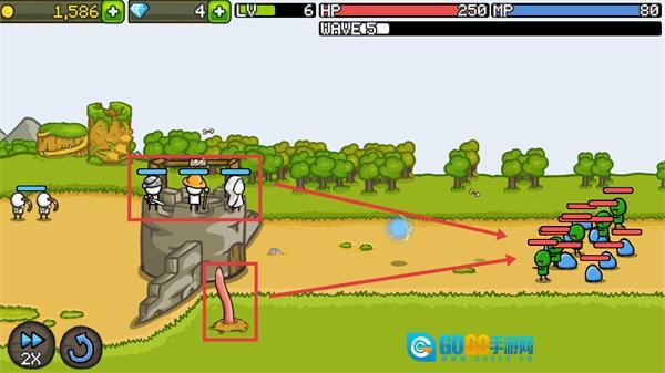 战斗时点击城墙上的英雄就能释放其技能,释放技能会消耗MP,并且技能会进入较长时间的冷却状态,建议在怪物密集或遭遇BOSS时使用。