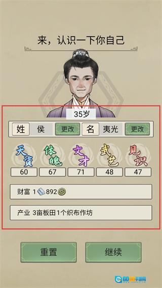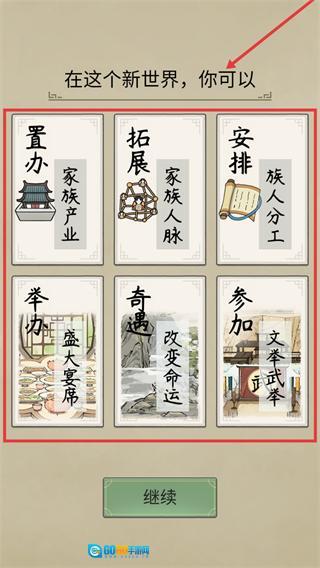 4、创建角色时可以对姓名和属性进行调整,要保证【文才】或者【体魄】的数值处于较高水平,在确定初始产业之后点击继续,就能开启家族故事了。