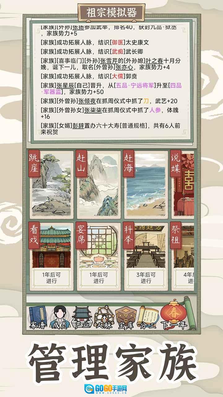 2、动态事件触发机制会随机生成各类挑战,玩家需要依据家族的实时状态做出灵活决策,这种保障家族稳定发展的设计颇具策略性。