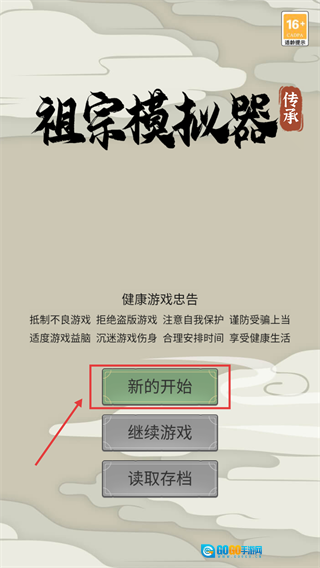进入游戏后,点击【新的开始】按钮创建新存档,开启祖宗传承的模拟之旅,这是体验核心玩法的第一步。