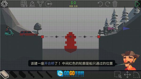 在规划环节,游戏会展示简洁的2D界面。您需要在此挑选最合适的建桥材料,并进行搭建的初步构思。