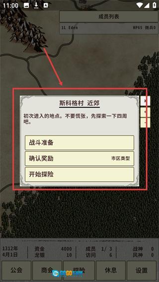 4、进入【斯科格村近郊】界面后,点击【战斗准备】选项,仔细检查装备配置和队伍状态,确认可获得的奖励信息,随后开启探险之旅,尽情体验中世纪战斗带来的独特乐趣。