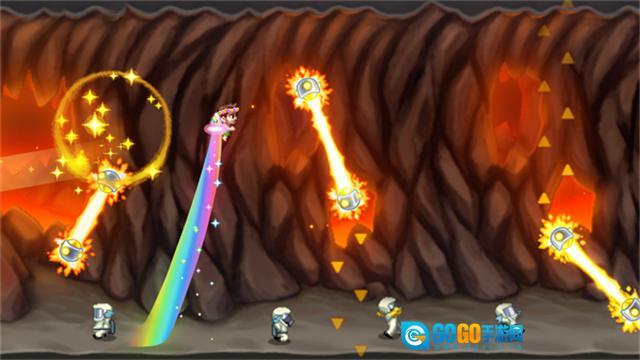 1、穿上酷炫的喷气背包翱翔天际,灵活躲避迎面而来的激光、密布的电网与追踪而至的导向飞弹。