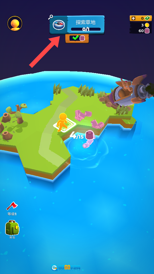 3、完成【砍木头】任务后,留意后续的【探索草地】任务,操控角色前往草地的指定区域以完成探索。