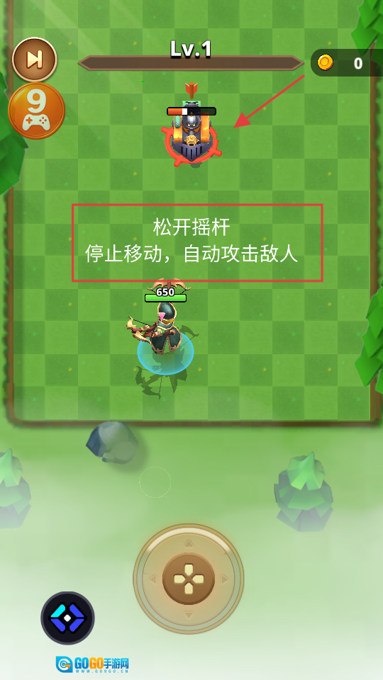 2、松开【摇杆】后角色会停止移动并自动攻击敌人,战斗时可以先通过走位调整位置,再松开摇杆来实现更高效的输出。