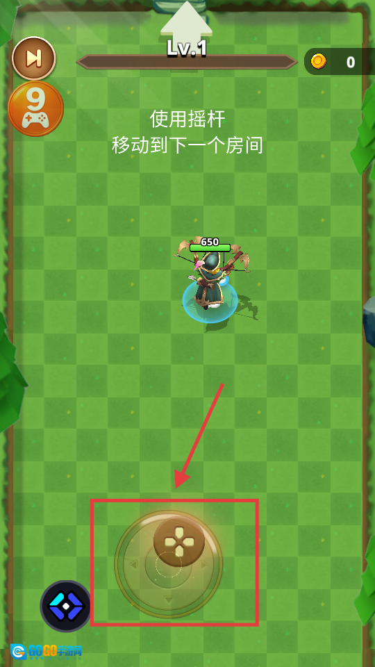 1、通过【屏幕底部】的【摇杆】来操控角色移动,按照提示前往【下一个房间】,开启新区域的探索。