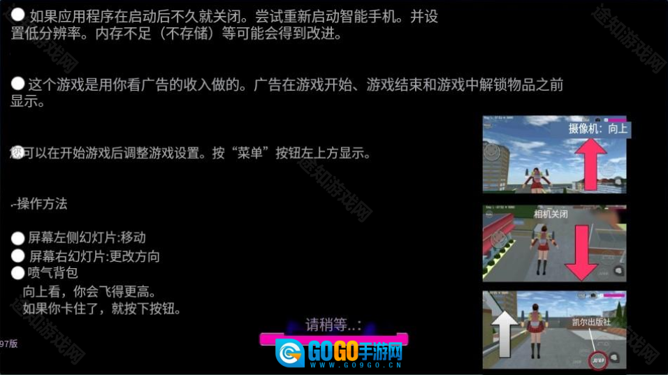 向上看,你会飞的更高,假如卡住了,按下按钮即可