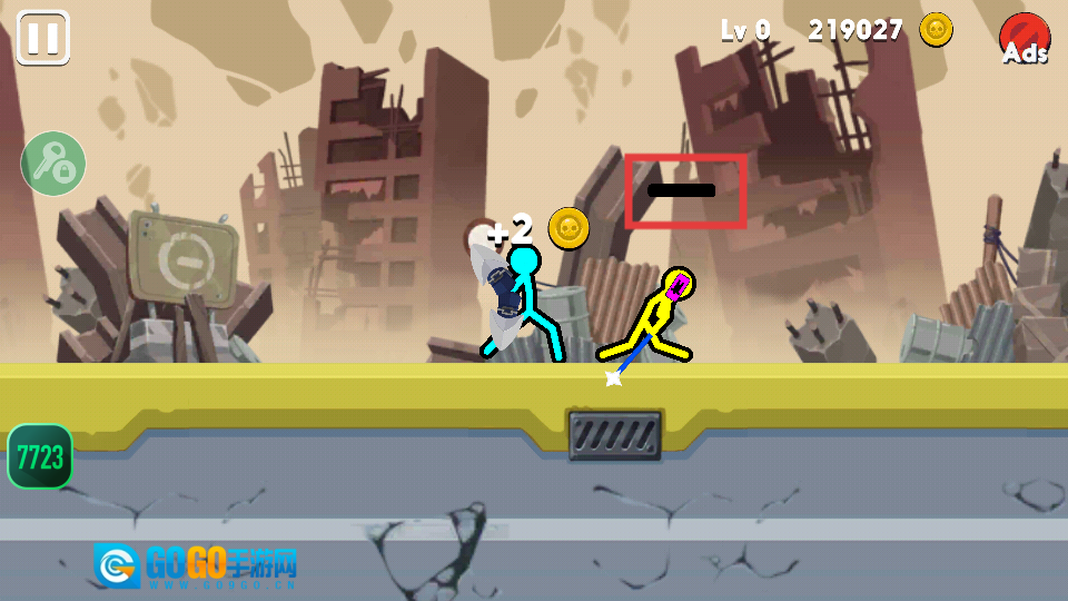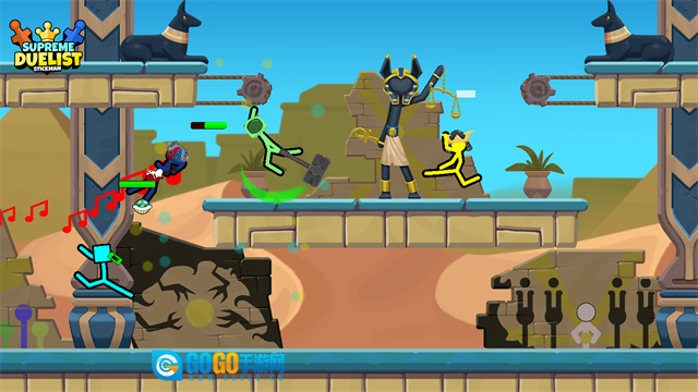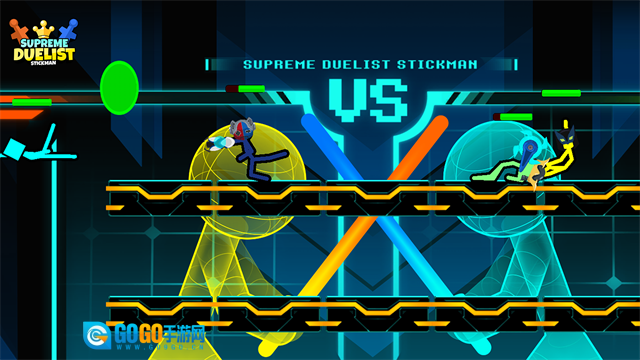 1、在角色选择界面点击【GO!】按钮,即可进入对战关卡,开启火柴人1V1决斗玩法。
