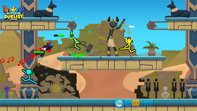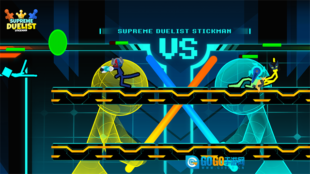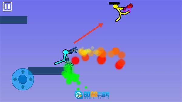 1、对战过程中,当蓝色火柴人陷入失衡状态时,要迅速操控它移动,以此躲避敌方接下来的攻击。