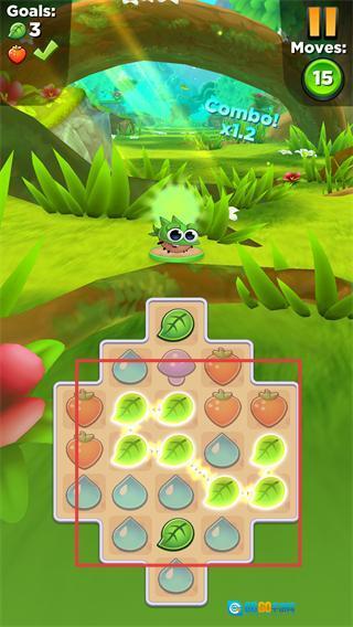 4、持续消除绿叶图案,触发【Combox12】连击,剩余目标数依旧是3,剩余步数15步,继续推进关卡。