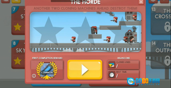 游戏中,你要操控你的小军团们斩杀对立的敌人。如果你有足够资源,可以克隆无数个战士进行保卫战。游戏操作简单,容易上手,有不同的关卡和不同的任务可以选择。