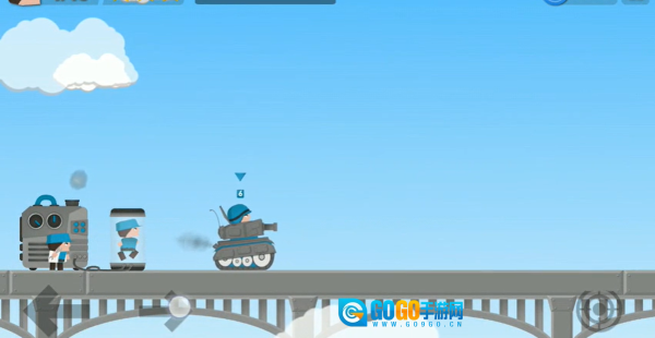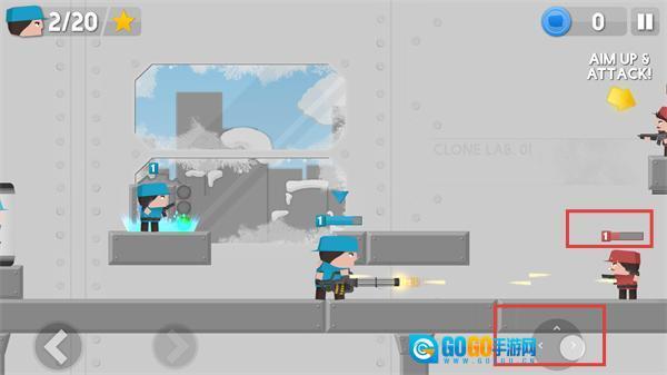 3、敌方单位(红色士兵)会在高处发起攻击,操控炮手瞄准高处目标,持续输出火力压制敌人。
