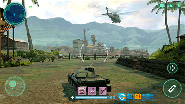 2、持续操控摇杆,指引坦克朝着绿色区域行进,逐步接近任务指定的位置。
