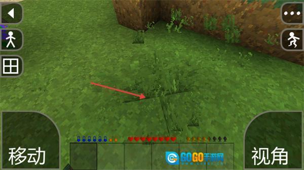 2、控制角色移动至植被区域,能够采集植物类资源,这些资源可用于临时缓解饥饿状态。
