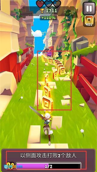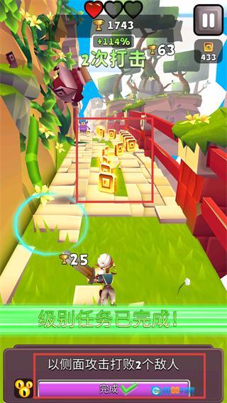 3、完成级别任务后,可继续在当前路径收集金色方块,借助打击效果来提高获取效率。
