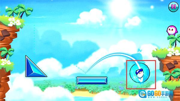 3、操控角色进行弹跳,利用已搭建好的板块,调整跳跃的轨迹,朝着目标区域不断前进。
