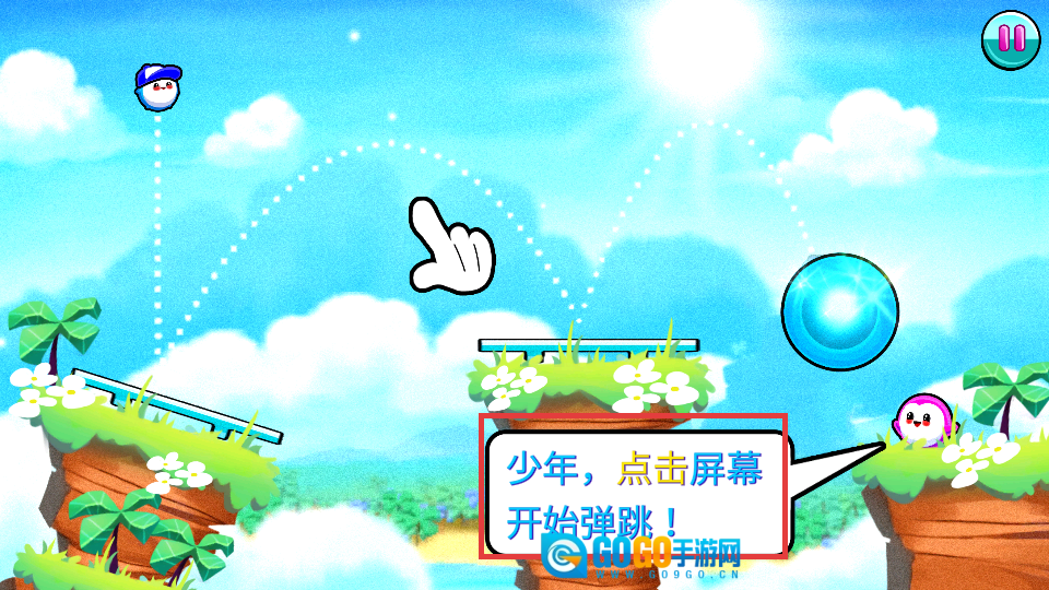 1、按照提示【少年,点击屏幕开始弹跳!】的指引,点击屏幕区域,使角色触发跳跃动作,从而开启当前关卡。