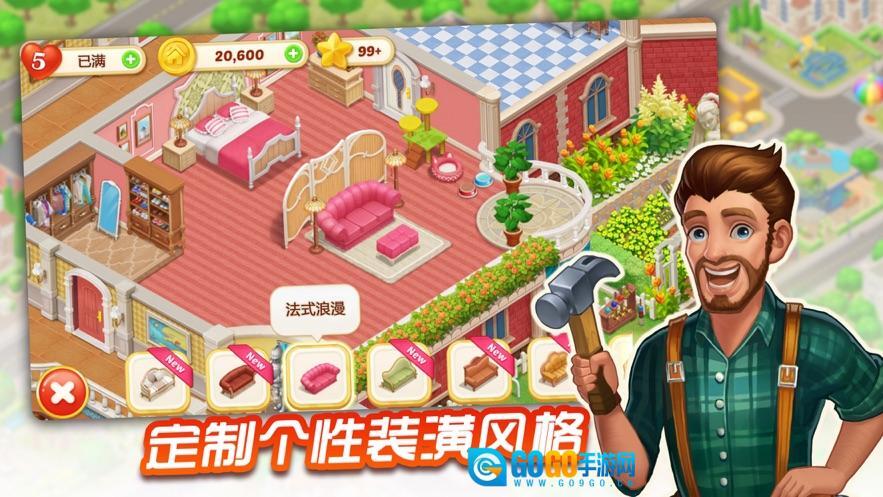 2. 装修布置:借助通关获取的奖励,购置并装点庄园里的每一处空间,无论是客厅、卧室,还是花园、泳池,都能进行全方位的打造,从而构建出自己理想中的家园。