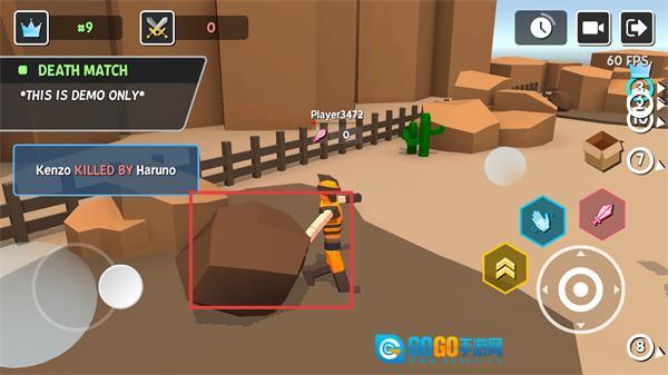 2、成功击败敌人后,屏幕会弹出击杀提示(例如【Kenzo-KILLED-BY-Haruno】),玩家能够借助场景里的石块来规避敌方发起的攻击。