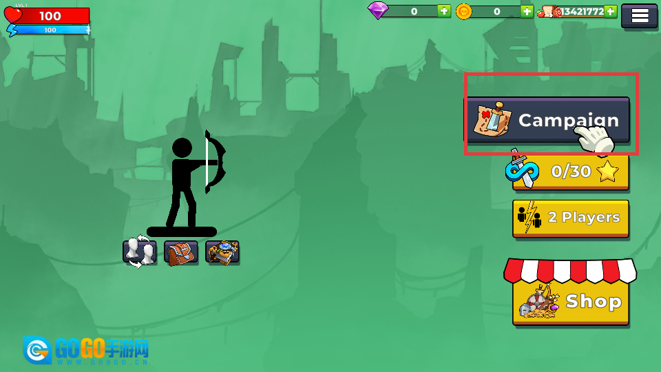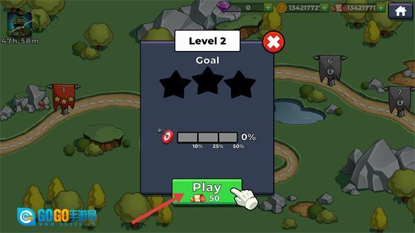 1、挑战【Level-2】关卡需消耗【50】金币,点击【Play】按钮即可开启新一轮弓箭对决挑战。