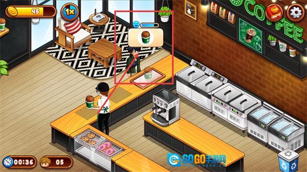 2、依据顾客头顶显示的饮品图标,制作相应的咖啡饮品,完成制作后将其送到顾客桌前,确保服务流程顺利进行。