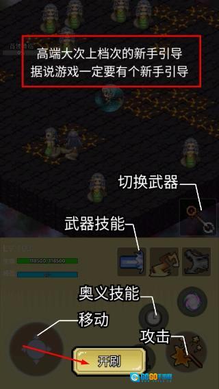 1、点击【开刷】进入战斗,利用【移动】按钮控制角色走位,搭配【攻击】按钮输出,可切换【武器技能】提升战力。