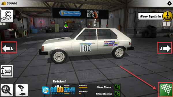3、借助左右箭头切换浏览赛车外观,挑选契合当前赛道的车型来参与赛事。