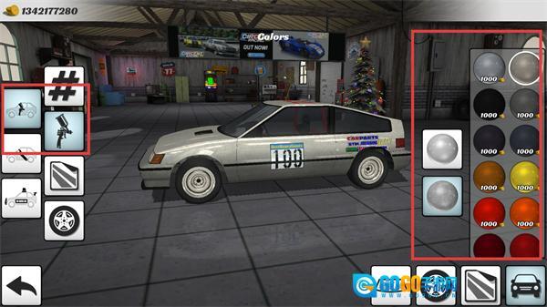 4、进入车辆定制界面后,消耗金币选定黑色涂装,借助工具图标来调整车辆外观,从而打造出专属的个性化赛车。