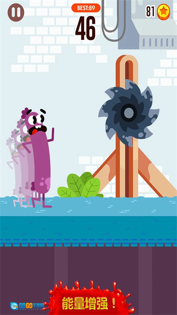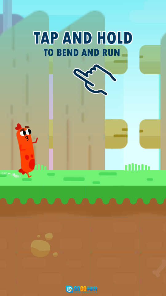 2、游戏过程中请依据【TAPANDHOLDTOBENDANDRUN】的提示,通过点击并按住屏幕的方式来操控香肠角色进行移动。