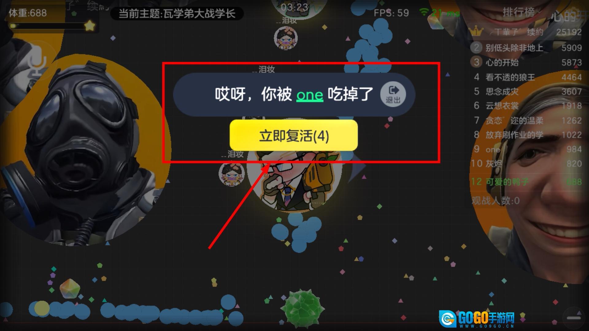 4、若被其他玩家吃掉,可选择立即复活继续游戏,保持游戏节奏,避免因失败中断进程影响体验。