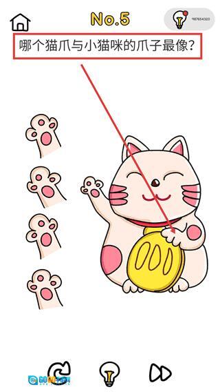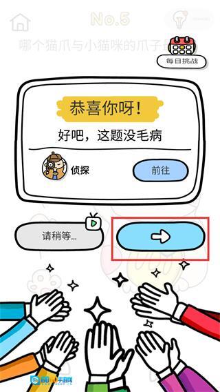 3、在【猫爪匹配】关卡中,观察【小猫】举起的爪子特征,对比左侧选项,找出最相似的猫爪并点击。