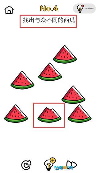 1、找出【与众不同的西瓜】关卡,仔细观察六块西瓜细节,找到被咬过的那块并点击,即可顺利通关。