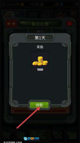 1、每日登录后点击【领取】按钮,获取第1天的1000金币奖励,积累初始资源用于战机养成。