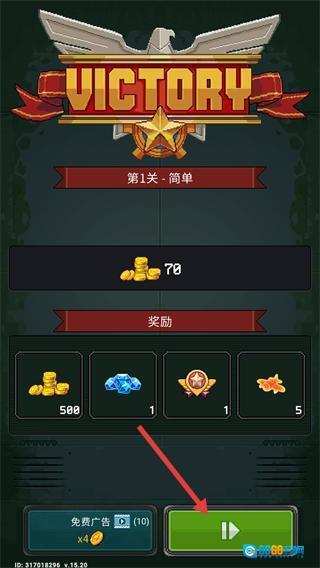 4、结算界面点击绿色按钮(红框内),进入下一关挑战,继续积累金币、钻石等资源提升战力。