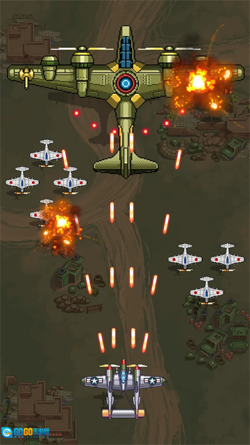 - 复古再造:玩过以前的射击游戏(STG)吗?这款自上而下的射击玩法会让你不禁感叹不仅如此还可能唤起你童年时的美好回忆。不论你是先锋,天龙战机,王牌战队,雷蛇还是空气飞船的粉丝,只要你玩过各种空战游戏,你一定会爱上我们的1945空战