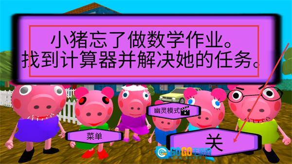 2、游戏弹出任务提示,需完成【找到计算器并解决小猪的数学作业任务】,点击【关】按钮处理提示弹窗。