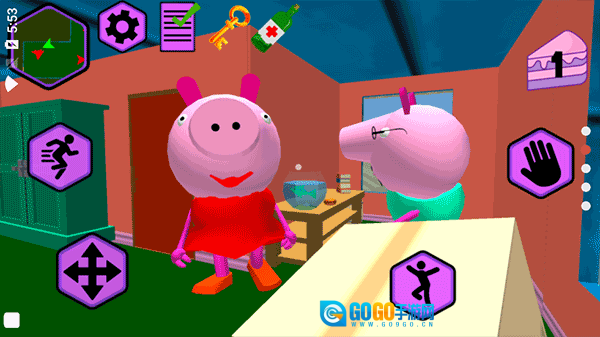 疯狂佩奇一家汉化版是根据经典动漫小猪佩奇为原型打造的逃生解谜游戏,玩家在这款中能够体验到全新的剧情故事,躲避小猪佩奇一家的追杀,成功逃离这里,每个关卡都是有不同的主题需要你解锁,并且猪爸爸、猪妈妈以及佩奇和乔治都是会在这里抓捕你哦,小心自己被抓,否则游戏就会失败,但是每个关卡的主题都是很有意思的,快来在小猪佩奇家开始有趣的逃脱冒险吧。