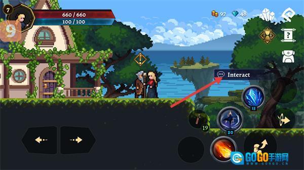 4、移动至房屋旁,点击【Interact】按钮与NPC交互,触发剧情或获取任务,推进游戏流程。