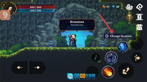 2、到达【Krosstoen-Peaceful-area】区域,点击【Change-location】按钮,可切换至其他场景探索。