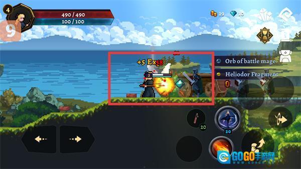 4、遭遇【双持剑敌人】,释放技能攻击,获得【+5-EXP】奖励,同时注意躲避敌人攻击,保持血量健康。