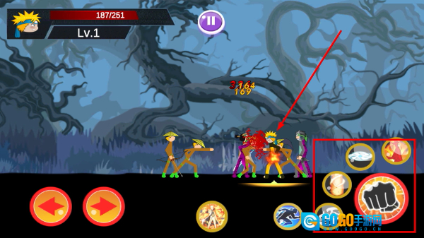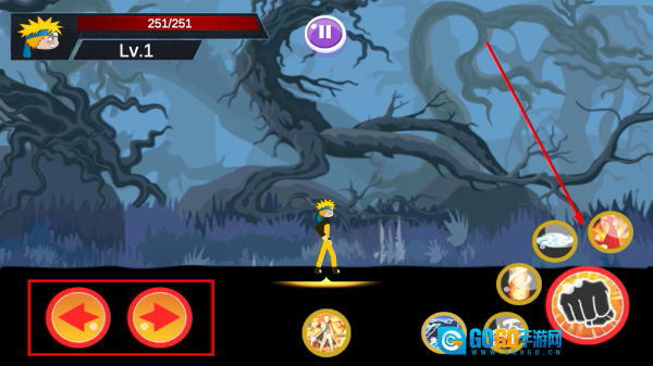 2、进入战斗后通过左右方向按钮控制角色移动,同时观察右侧技能图标,选择合适时机释放技能攻击敌人。