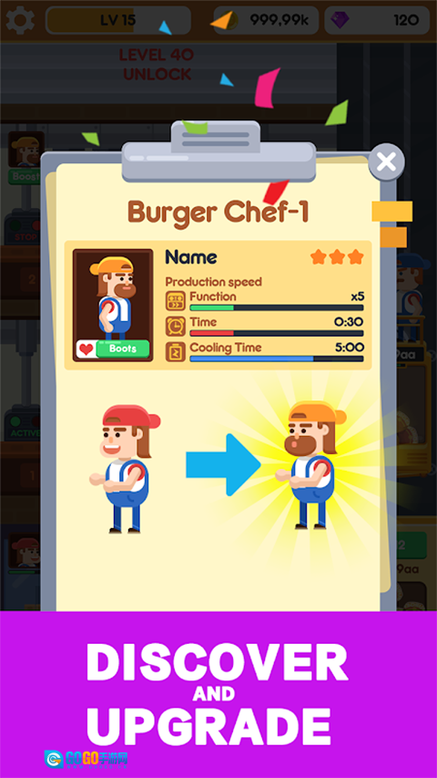 2、员工管理系统:厨师、收银员等岗位可分别升级,通过技能强化来调整业务指标。岗位间的特性差异为管理工作增添了深度。